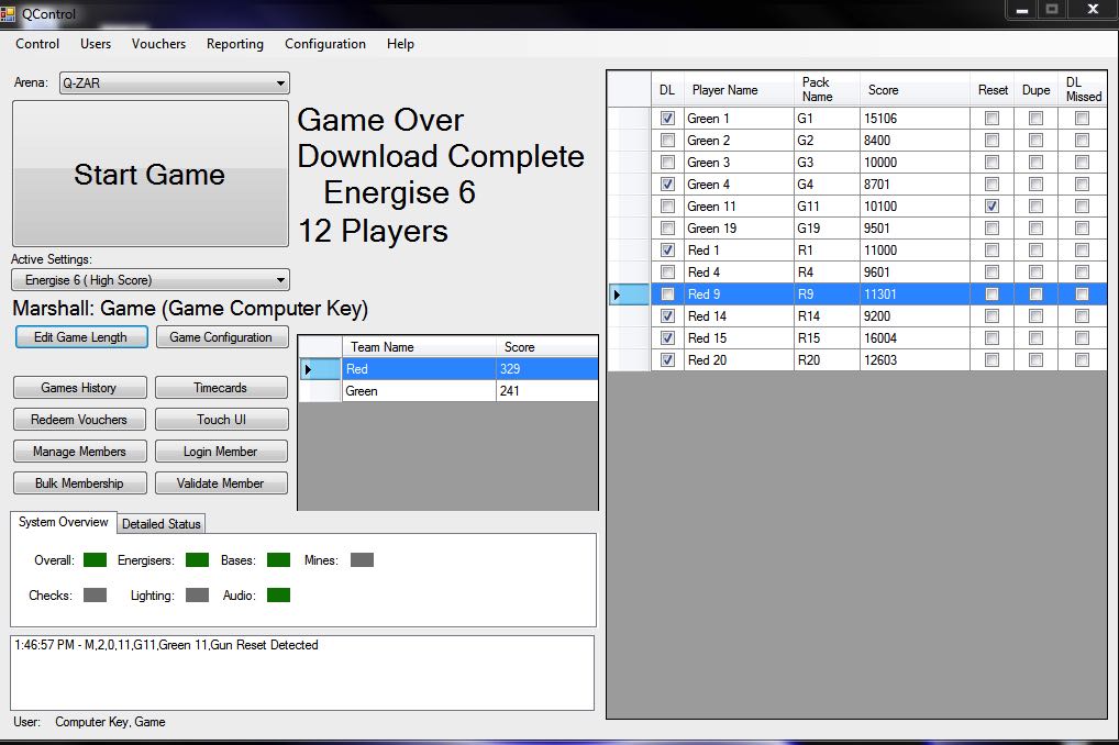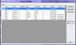 - Details of every game is retained within the system showing number of players, game length, pre-set used, etc.